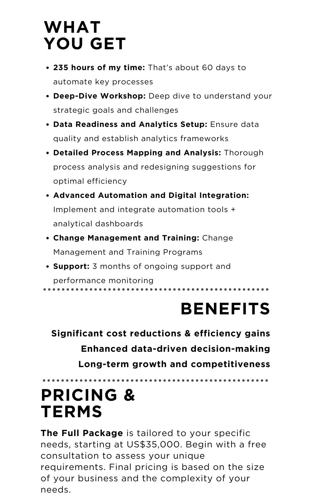Ready to transform your operations?Contact me today to find out which plan is right for you and start your journey towards operational excellence!
